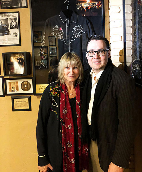 Singer/songwriter and record producer Gail Davies was inducted into the Oklahoma Music Hall of Fame on November 27, 2018 - along with Woody Guthrie, Roger Miller, Sammi Smith, Merle Haggard, Leon Russell, Hoyt Axton, Wanda Jackson, Vince Gill and Gail's favorite female vocalist, Patti Page. Kendall's restaurant hosted all of the inductees and organized the exhibits that you see in this photograph of Gail with her very talented son, Chris Scruggs.